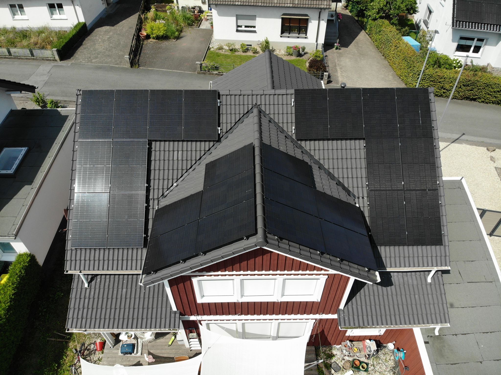 In Arnsberg wurde auf diesem Einfamilienhaus eine leistungsstarke Photovoltaikanlage von uns installiert. Die Module verteilen sich auf insgesamt drei Dachflächen – zwei Seiten des Haupt-Satteldachs sowie dem vorderen Giebeldach – und fügen sich dabei nahtlos in die Dacharchitektur ein. Dieses Projekt zeigt beispielhaft, wie sich moderne Solartechnik, architektonische Ästhetik und nachhaltiges Wohnen miteinander verbinden lassen. Von der Planung bis zur Inbetriebnahme wurde die Anlage durch unser Team fachgerecht und effizient umgesetzt.