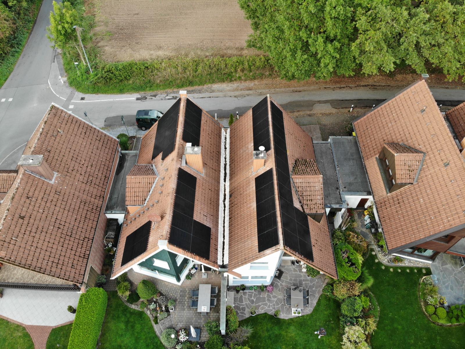 In Menden haben wir auf beiden Hälften dieser Doppelhaushälfte eine umfangreiche Photovoltaikanlage installiert. Die Solarmodule wurden auf mehreren Dachflächen präzise positioniert und integrieren sich optisch harmonisch in das bestehende Ziegeldach. Die Module wurden exakt auf die jeweilige Dachgeometrie abgestimmt, sodass auch kleinere Teilflächen und Gauben sinnvoll mit einbezogen werden konnten. Dieses Projekt ist ein hervorragendes Beispiel dafür, wie sich auch bei verbundenen Gebäuden moderne Solartechnik architektonisch ansprechend und leistungsstark umsetzen lässt. Für beide Haushalte bedeutet das: nachhaltige Stromerzeugung direkt vor Ort, langfristige Unabhängigkeit von steigenden Strompreisen – und ein klarer Beitrag zum Klimaschutz.